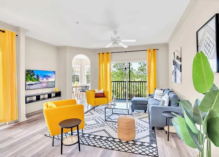 Gasten kunnen gebruik maken van een ingerichte keuken voorzien van een waterkoker, een koelkast en een oven. De luchthaven Orlando Internationaal is bereikbaar binnen 43 minuten rijden van deze 2-badkamer accommodatie.